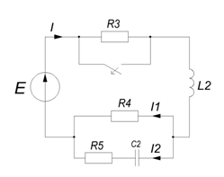 • Найти переходный ток на входе цепи второго порядка, изображенной на схеме, и построить график его изменения в функции времени. ЭДС источника задана в виде: e(t)=Emcos(106t+Ye)