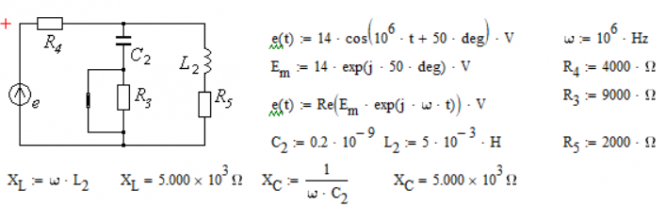 Задание- Найти переходный ток на входе цепи второго порядка, изображенной на схеме, и построить график его изменения в функции времени. ЭДС источника задана в виде: e(t)=Emcos(106t+Ye)