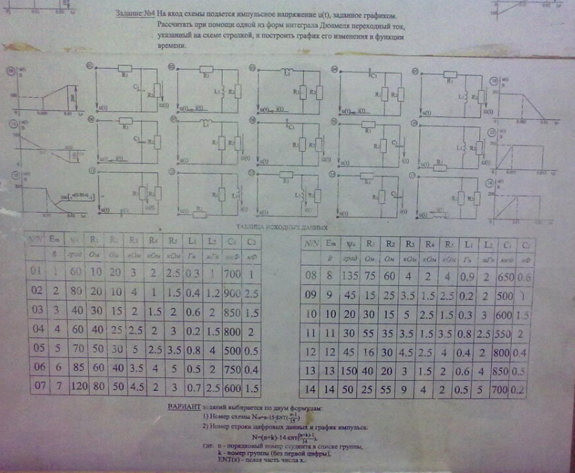 РГЗ №4 - Переходные процессы в цепях с сосредоточенными параметрами - Схема 5 - Данные 4