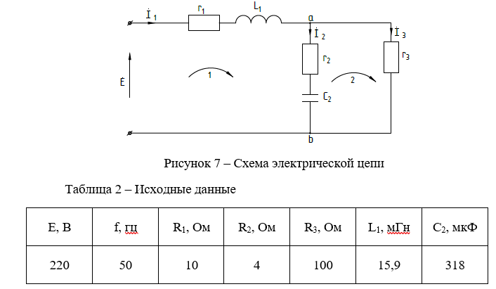 Задана электрическая схема (см. рисунок 7). Исходные данные для схемы приведены в таблице 2.