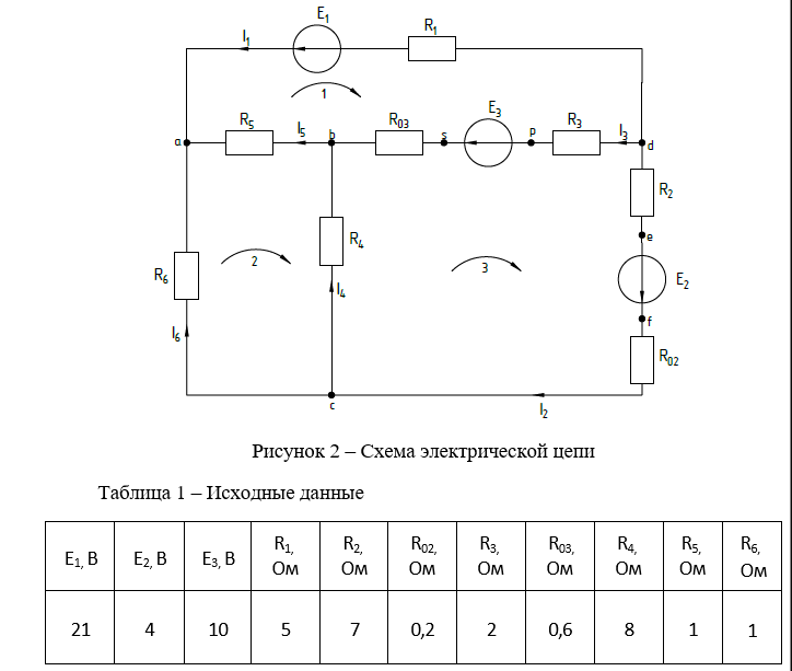 Задана электрическая схема (см. рисунок 2). Исходные данные для схемы приведены в таблице 1.