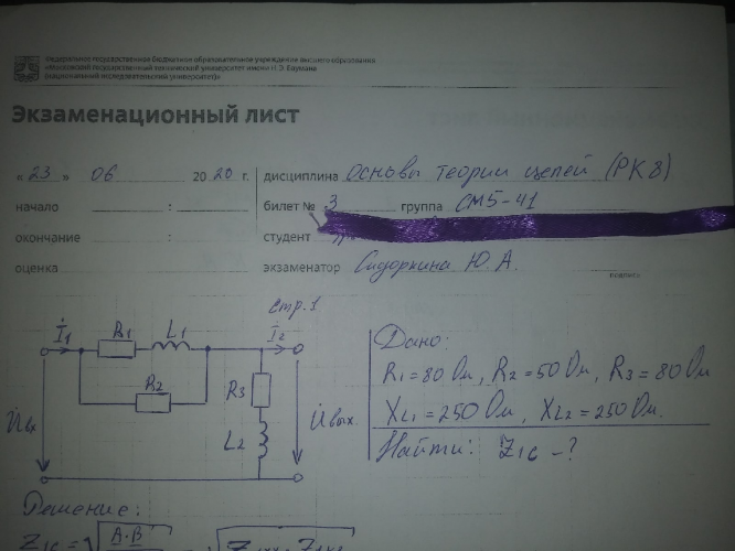 Для студентов МГТУ им. Н.Э.Баумана по предмету Основы теории цепей (ОТЦ)РК №8 СМ5-41 Вариант 3РК №8 СМ5-41 Вариант 3