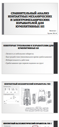 Презентация: Сравнительный анализ контактных механических и электромеханических взрывателей для кумулятивных БП