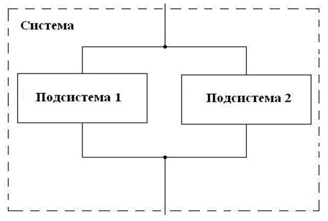 Для наработки требуется рассчитать вероятность безотказной работы системы (см. рис. 4), состоящей из двух подсистем, одна из которых является резервной.