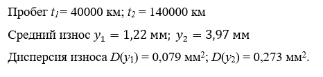 Дисперсия износа D(y1) = 0,079 мм2; D(y2) = 0,273 мм2.