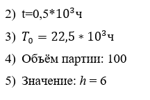 • 1) Массив значений наработки до отказа Т, 1000 ч: