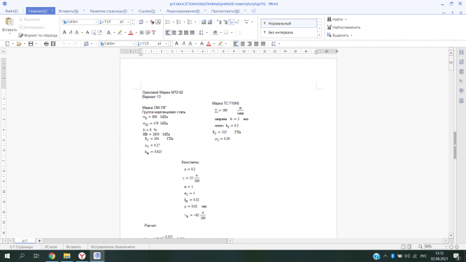 Для студентов МГТУ им. Н.Э.Баумана по предмету Основы теории резанияДз1 вариант 13Дз1 вариант 13