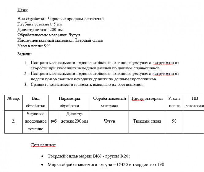 ДЗ: Построение зависимости периода стойкости режущего инструмента от скорости резания и подачи. Домашнее задание №1