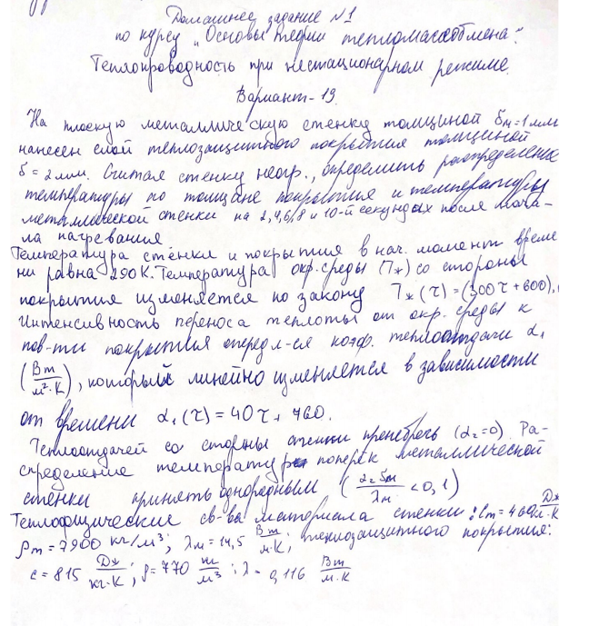Для студентов МГТУ им. Н.Э.Баумана по предмету Основы теории тепломассообменаДомашнее задание №1 (вариант 19)Домашнее задание №1 (вариант 19)
