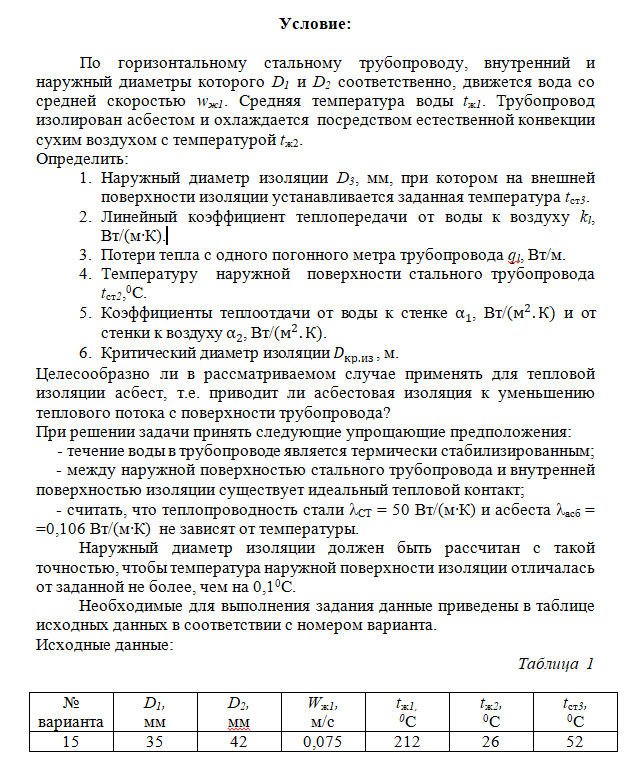 ДЗ 2: ДЗ №2: Теплопередача через двухслойную цилиндрическую стенку ( в Microsoft Word) вариант 15