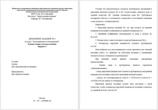 ДЗ 2: ДЗ №2: Теплопередача через двухслойную цилиндрическую стенку ( в Microsoft Word) вариант 5