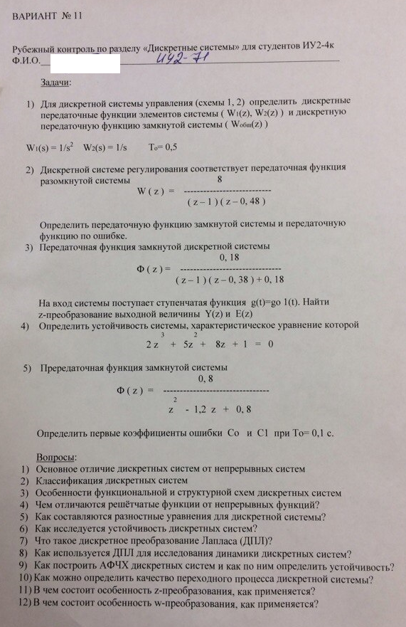 Для студентов МГТУ им. Н.Э.Баумана по предмету Основы теории управления (ОТУ)РК по разделу "Дискретные системы"РК по разделу "Дискретные системы"