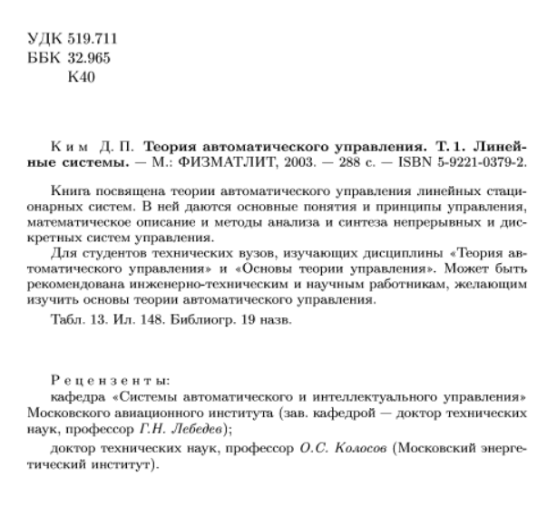 Для студентов НИУ «МЭИ» по предмету Основы теории управления (ОТУ)Ким Д.П. - Теория автоматического управления. Том 1. Линейные системыКим Д.П. - Теория автоматического управления. Том 1. Линейные системы