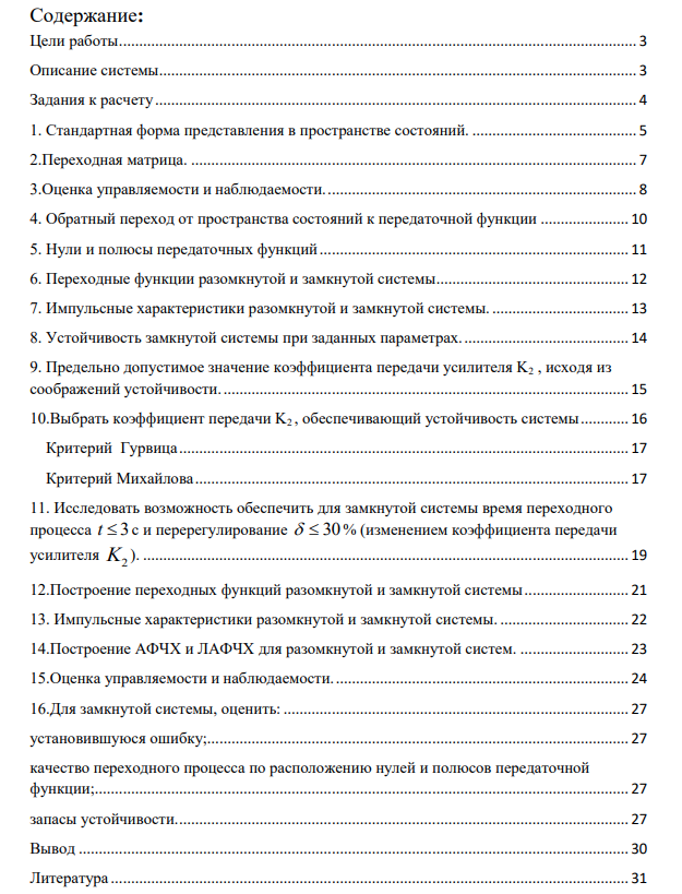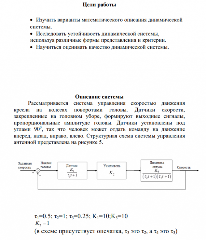  Изучить варианты математического описания динамической системы.  Исследовать устойчивость динамической системы, используя различные формы представления и критерии.  Научиться оценивать качество динамической системы.