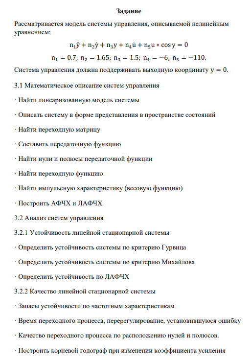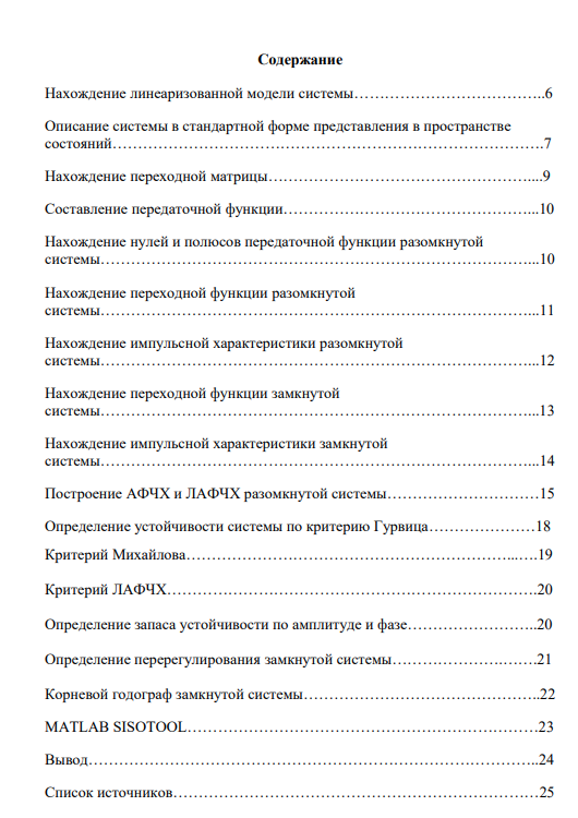 В данной работе мы изучаем математическую модель системы. Находим переходные и импульсные характеристики, передаточные функции замкнутой и разомкнутой системы. Проверяем критерии устойчивости: критерий Гурвица, критерий Михайлова, критерий ЛАФЧХ. Определяем запас устойчивости и строим корневые годографы. На основании этих данных мы делаем выводы о свойствах системы, полезных для теории управления.