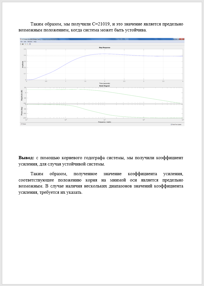 1. Требуется провести анализ замкнутой системы на устойчивость, получить переходный