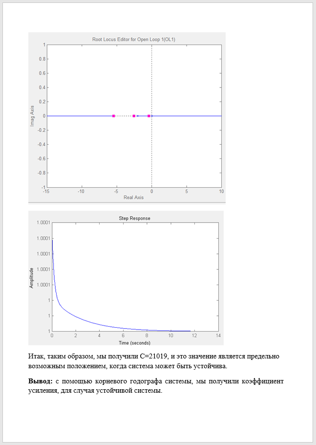 1. Требуется провести анализ замкнутой системы на устойчивость, получить переходныйпроцесс при поданном ступенчатом входном воздействии и определить диапазон