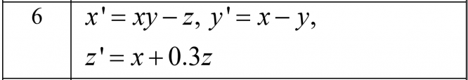 Для особых точек провести линейный анализ характера их устойчивости. Построить графики процессов во временной области в окрестностях особых точек и предельных циклов (при наличии). Дать анализ динамики изображающей точки в прямом и обратном времени. 4. Для заданной 3-х мерной нелинейной системы определить положение особых точек и характер их устойчивости. Построить фазовый портрет в фазовом пространстве, а также на фазовой плоскости любых двух координат. 5. Построить схему моделирования нелинейного процесса со скользящим режимом. Определить диапазоны значений коэффициентов усиления, при которых в системе присутствует: а) скользящий режим, б) предельный цикл.