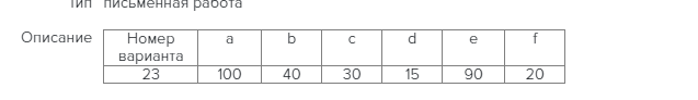 Номер варианта a b c d e f 23 100 40 30 15 90 20 .