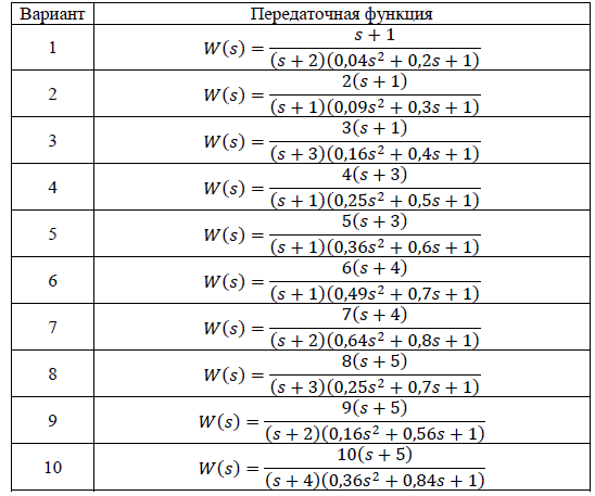 Задание 4. По критерию Найквиста исследовать устойчивость замкнутых систем, у которых передаточная функция в разомкнутом состоянии имеет следующий вид