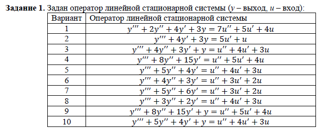 Задание 1. Задан оператор линейной стационарной системы (y – выход, u – вход):