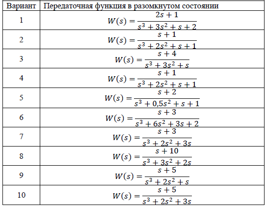2) составить передаточную функцию и дифференциальные уравнения разомкнутой системы