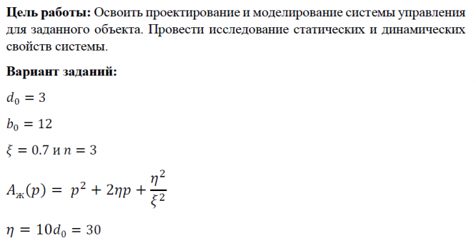 Главная » Учебные материалы » Основы теории управления (ОТУ) » Лабораторные работы » МГТУ им. Н.Э.Баумана » Несколько классов/семестров » Номер 3 » Вариант 21 » Отчет по лабораторной работе №3 "Расчет и моделирование линейной системы управления" (вариант №21)