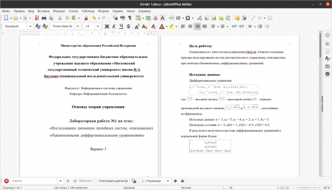 Для студентов МГТУ им. Н.Э.Баумана по предмету Основы теории управления (ОТУ)Исследование динамики линейных систем, описываемых обыкновенными дифференциальными уравнениямиИсследование динамики линейных систем, описываемых обыкновенными дифференциальными уравнениями