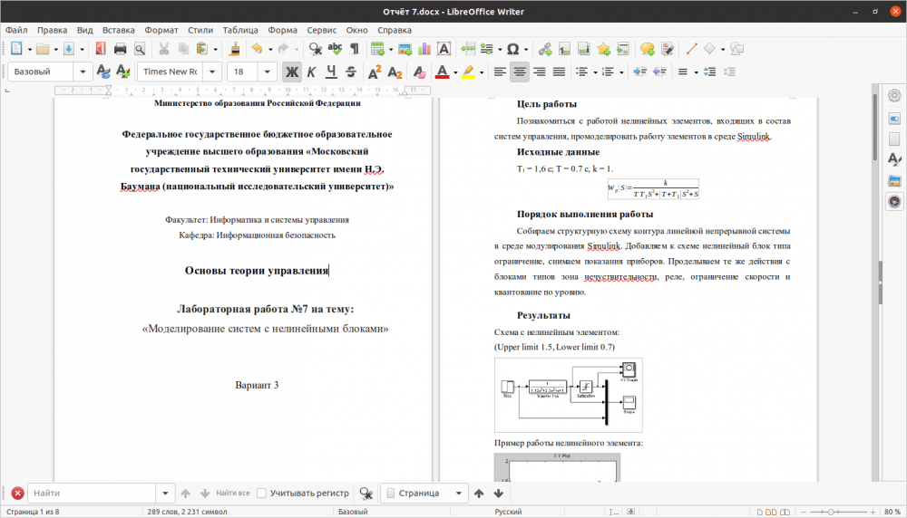 Для студентов МГТУ им. Н.Э.Баумана по предмету Основы теории управления (ОТУ)Моделирование систем с нелинейными блокамиМоделирование систем с нелинейными блоками