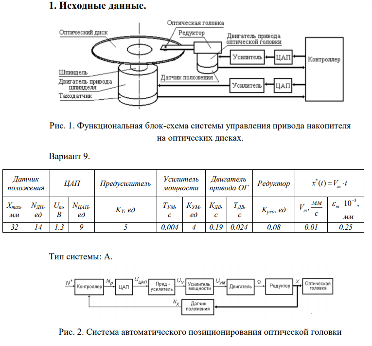 НИР «Динамический расчет системы автоматического управления накопителя на оптических дисках (CD-ROM)» Вариант №9
