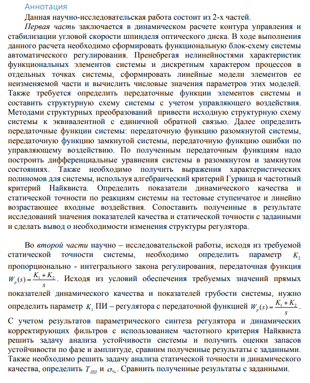 НИР: НИР Исследование системы автоматического регулирования скорости вращения оптического диска Вариант №28