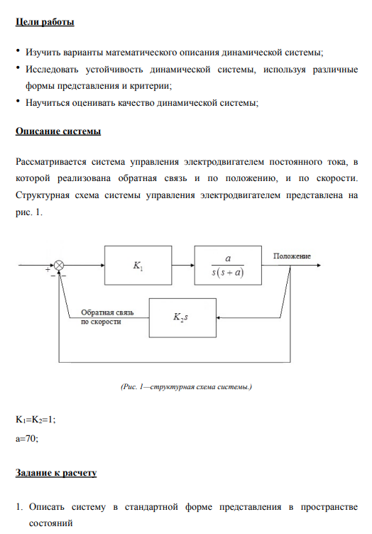 Цели работы • Изучить варианты математического описания динамической системы; • Исследовать устойчивость динамической системы, используя различные формы представления и критерии; • Научиться оценивать качество динамической систем