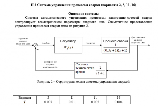 Для студентов МГТУ им. Н.Э.Баумана по предмету Основы теории управления (ОТУ)НИР по ОТУ. Система управления процессом сварки. Вариант 2.НИР по ОТУ. Система управления процессом сварки. Вариант 2.
