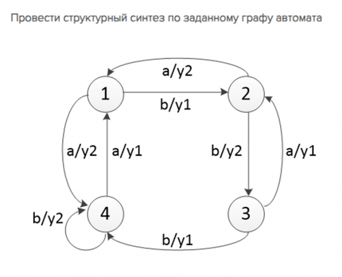 Для студентов ИДДО НИУ «МЭИ» по предмету Основы теории вычислительных системПровести структурный синтез по заданному графу автоматаПровести структурный синтез по заданному графу автомата