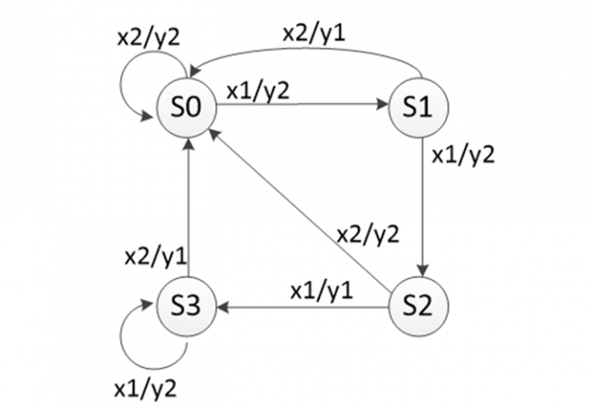 Для студентов ИДДО НИУ «МЭИ» по предмету Основы теории вычислительных системЗадан автомат Мили. Определить эквивалентный ему автомат МураЗадан автомат Мили. Определить эквивалентный ему автомат Мура