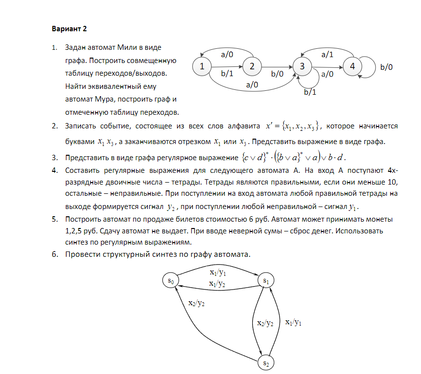 ДЗ: Эквивалентность и минимизация автоматов. Регулярные выражения. Структурный синтез автомата (Оценка 5) вариант 2