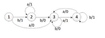 1. Задан автомат Мили в виде графа. Построить совмещенную таблицу переходов/выходов. Найти эквивалентный ему автомат Мура, построить граф и отмеченную таблицу переходов.