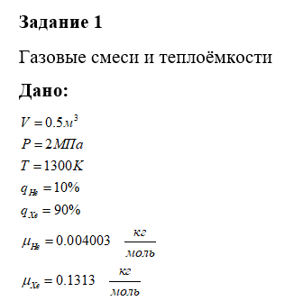 ДЗ 1: Газовые смеси и теплоемкости вариант 1