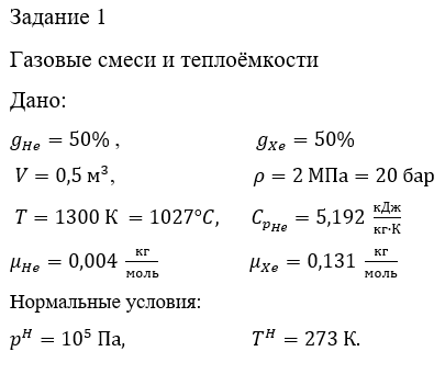 ДЗ 1: Газовые смеси и теплоемкости вариант 6