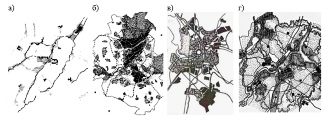 Исходя из приведенных схем, можно утверждать, что проект районной планировки Донкастерского каменноугольного бассейна отражен на схеме …