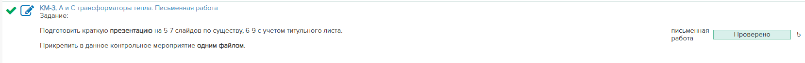 Услуга: Помощь со сдачей - КМ-3. А и С трансформаторы тепла. Письменная работа