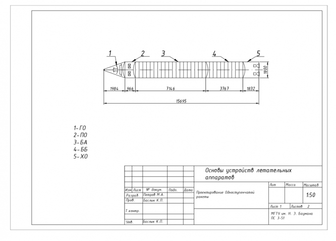 Вариант 8 Домашнее задание №2 "Определение проектно-конструкторский параметров ракеты с использованием готовых программ" DWG + РПЗ в WORD