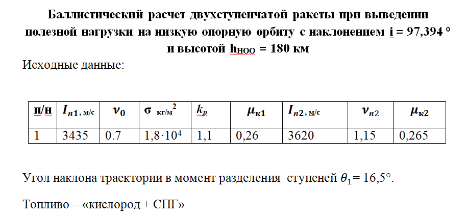 НИР: НИРС "Баллистическое проектирование РКН на базе РН сверхлегкого класса" вариант 1