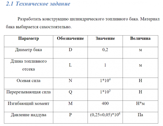 Для студентов МГТУ им. Н.Э.Баумана по предмету Основы устройства ракетно-космической техникиЦилиндрический топливный бакЦилиндрический топливный бак