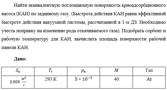 Условие ДЗ №2 (Расчет сорбционных характеристик поглощающих элементов вакуумных систем):