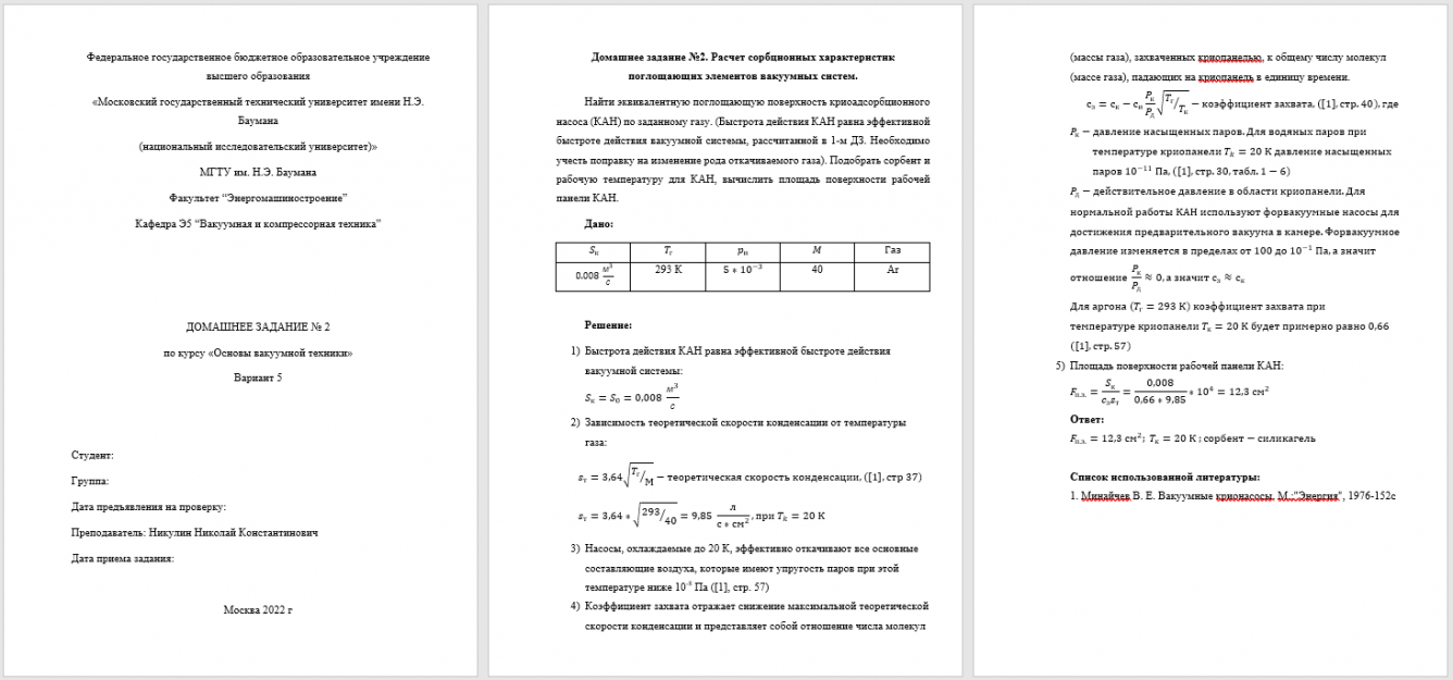 Для студентов МГТУ им. Н.Э.Баумана по предмету Основы вакуумной техники (ОВТ)ДЗ №1 + ДЗ №2ДЗ №1 + ДЗ №2