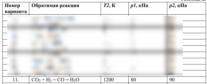 Запишите уравнение реакции вашего варианта (см. табл. 2):
