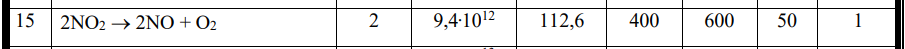 2. Каков физический смысл константы скорости реакции? Определите константу скорости реакции для своего варианта (столбец 1) при T1 =…(столбец 6) и T2 =…(столбец 7). От каких параметров зависит константа скорости реакции? Укажите её размерность для Вашей реакции.