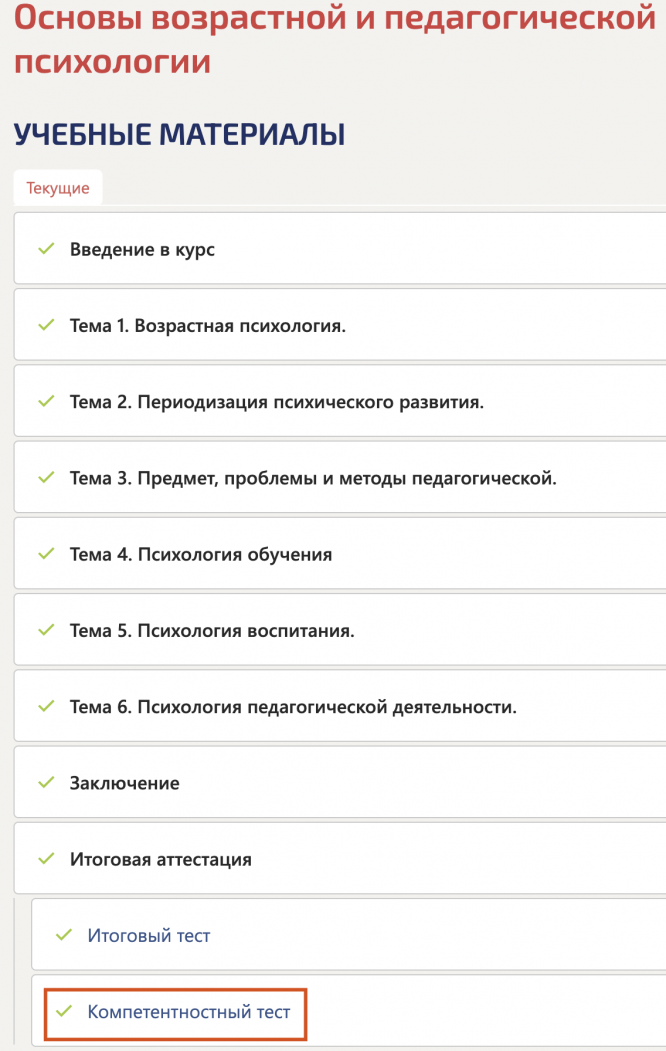 Ответы на компетентностный тест в Синергии за 2 семестр по Основам возрастной и педагогической психологии.