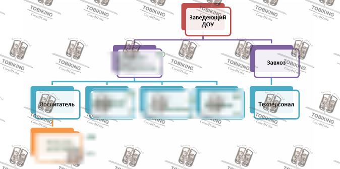 Воспитатель доложен четко знать организационную систему управления конкретным дошкольным образовательным учреждением. Изучите блок схему и переместите наименования должностей сотрудников, с которыми наиболее тесно взаимодействует воспитатель. Блок-схема — Организационная система управления дошкольным образовательным учреждением.